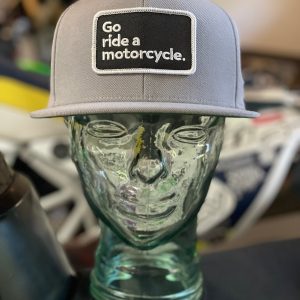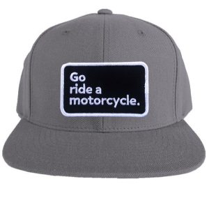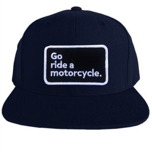 Go ride a motorcycle Premium Snapback Hat. Original Go Ride A Motorcycle patch sewn front and center. with small Crown Moto logo tag on the side of this premium snap back from trusted brand Yupoong.