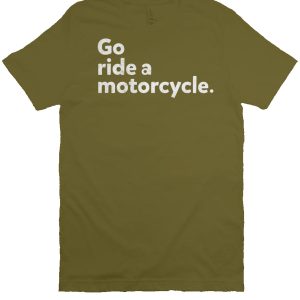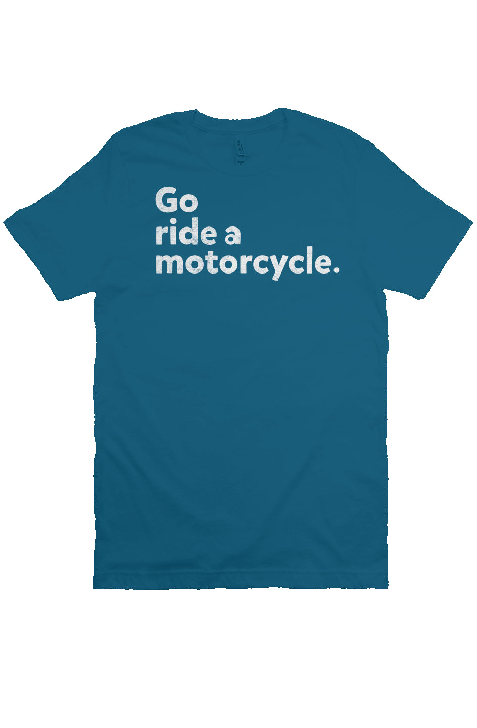 Original Go ride a motorcycle design in slightly halftoned FX white. across the chest of this fashion forward fitting. super soft shirt. This Bella Canvas t-shirt is loved for its quality and brilliance in design. Flattering fit and created with ring spun cotton and polyester. it feels like your favorite tee when you wear it. It feels soft and light. with just the right amount of stretch.